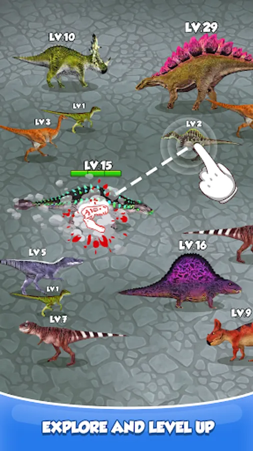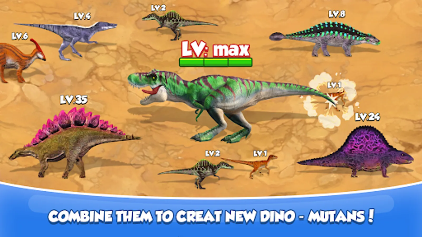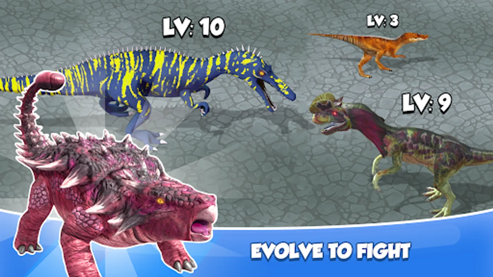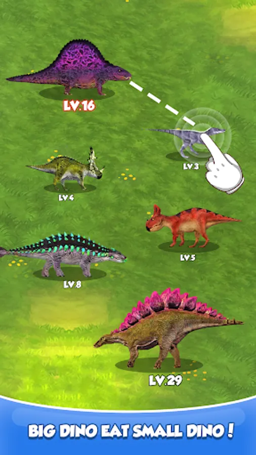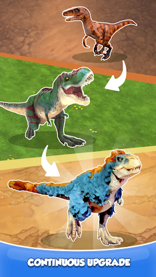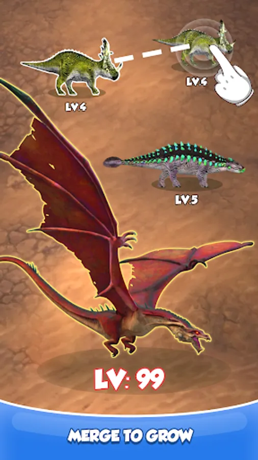 Match and match similar dinosaurs to unlock new more powerful dinosaurs. Evolve your prehistoric monsters and unlock all dinosaur warriors like T-Rex, Pterodactyl, and Triceratops.