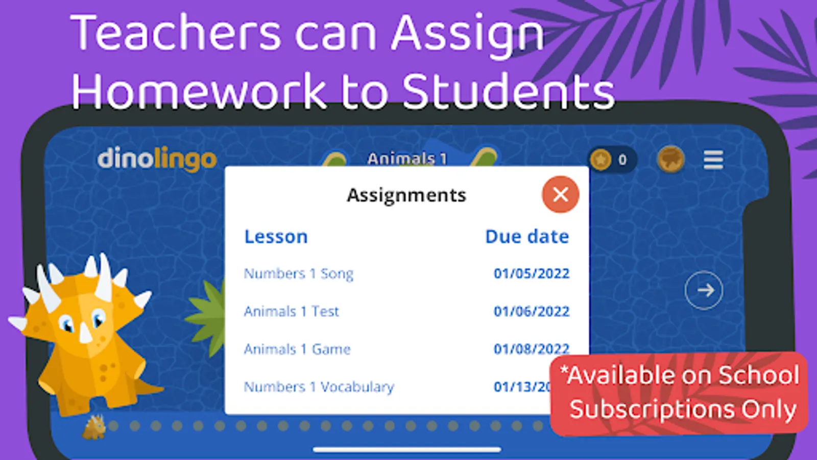 Dinolingo’s new Dashboard allows effective, real-time parental controls and monitoring tools to view and personalize each child’s progress and participation.