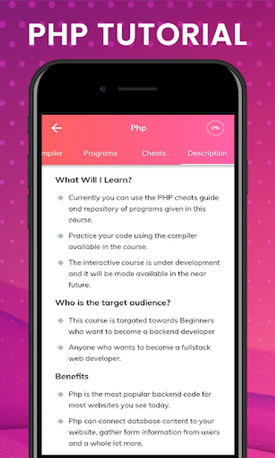 Learn PHP is finally available! Continue your FREE SoloLearn web development training today, by learning the most widely used web programming language in the world!