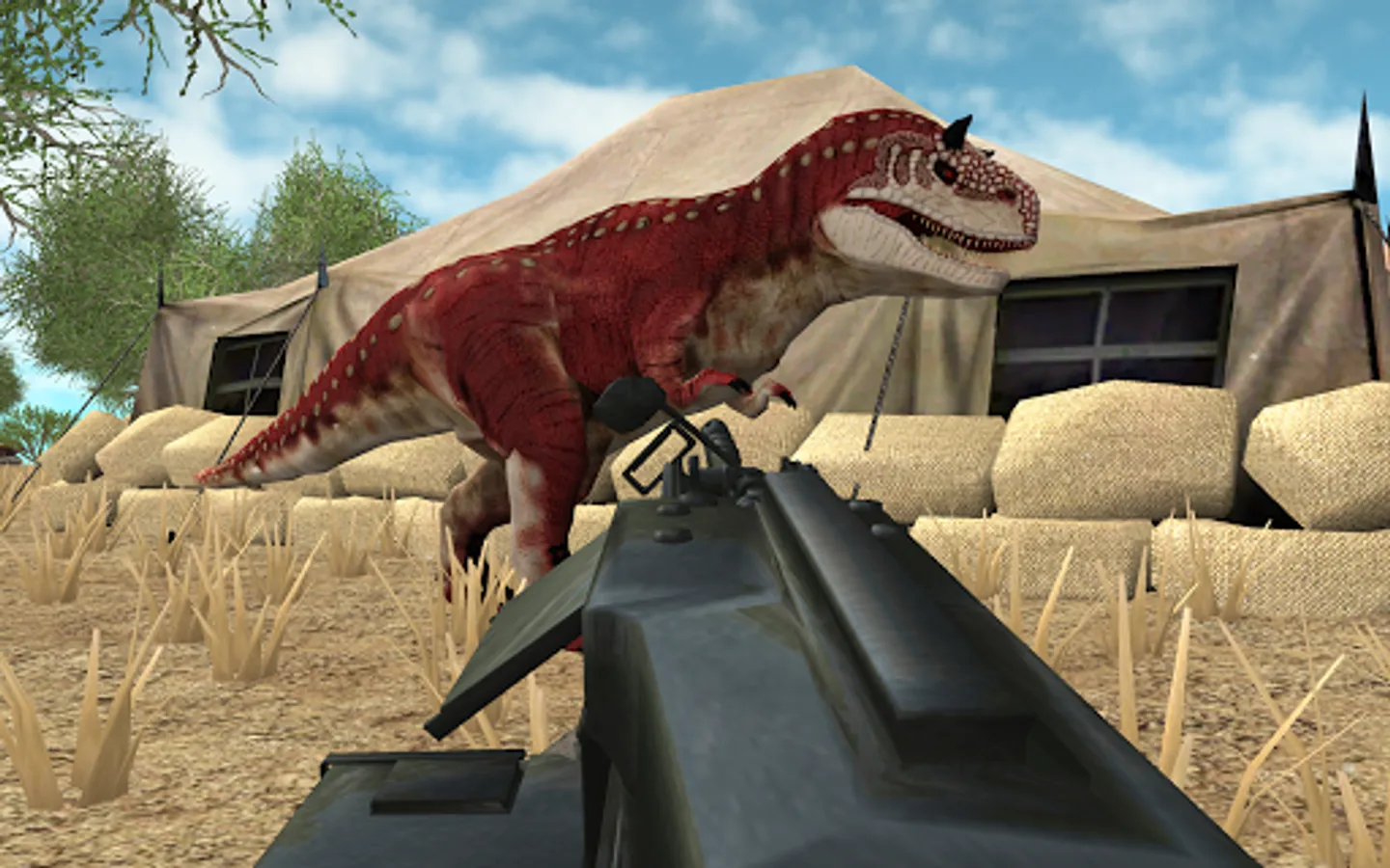 This dino game is dinosaur simulator. Superior extreme survival game with 15 levels of increasing difficulty. 15 weapons with increasing power to expand your arsenal. Big dinosaur animals, not dino pets, hunters that'll have a dinosaur rampage and that'll chase and attack the enemy, which is located on their territory. They can hear your noise. And they'll hun, be quick and deadly to you.