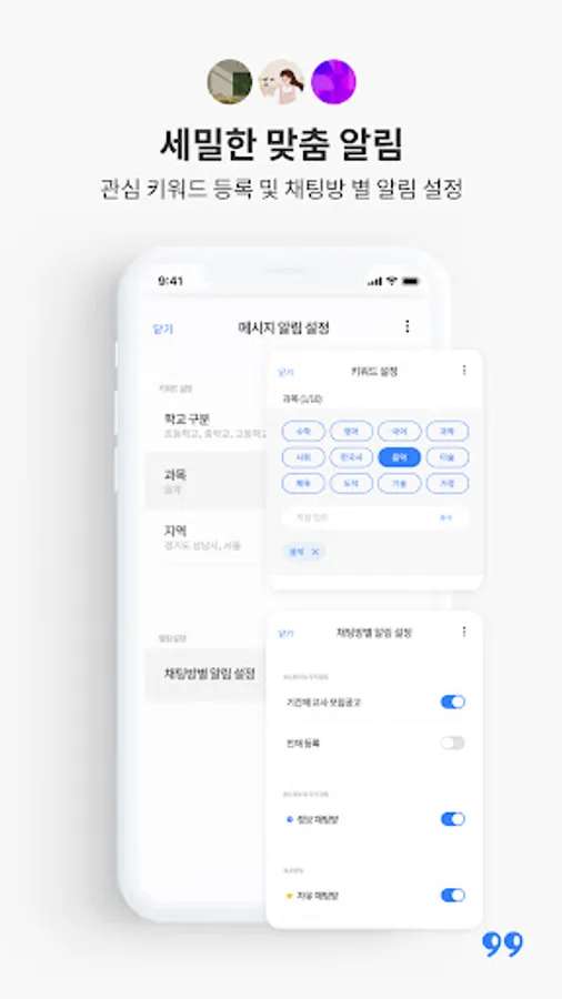 - ‘School class/subject/region’ keyword registration & keyword-based push notifications