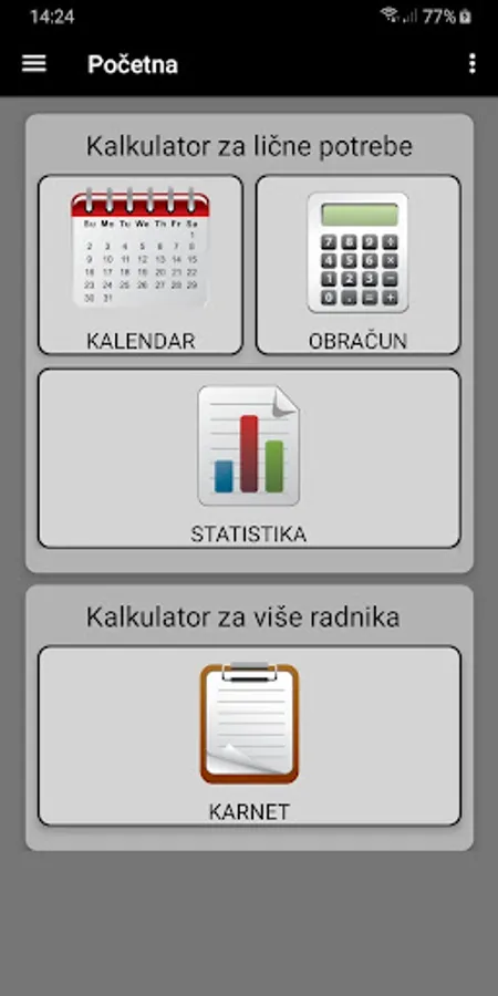 The application consists of two parts: Parts for personal time records and salary calculation and Carnet.