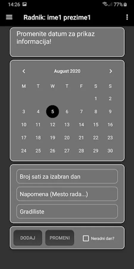 The application was made for the company GTP inženjering Belgrade, but it can be used by anyone who wants to have their own record of working hours and calculate the salary for a certain period.