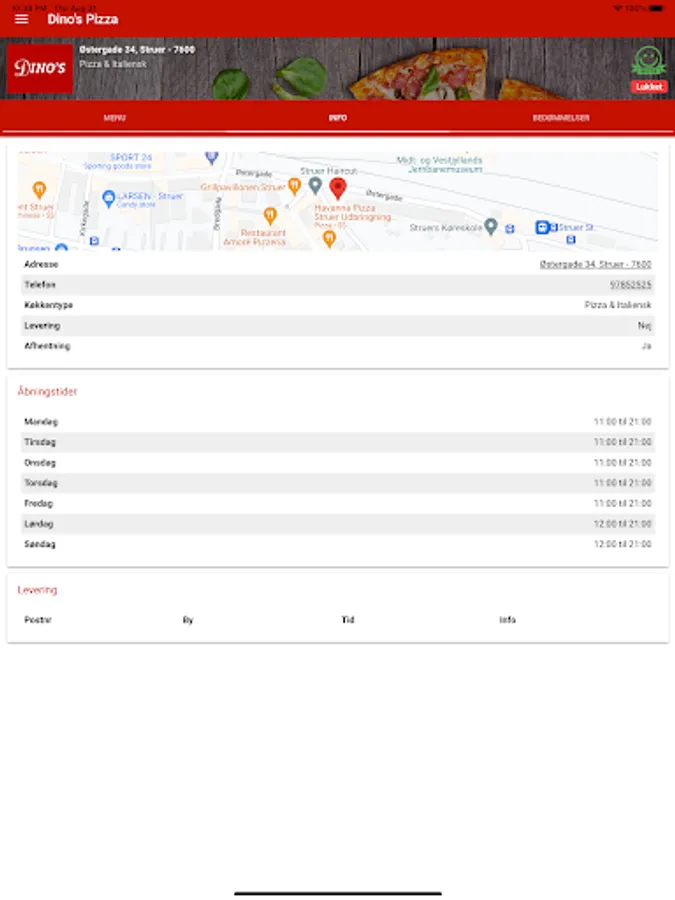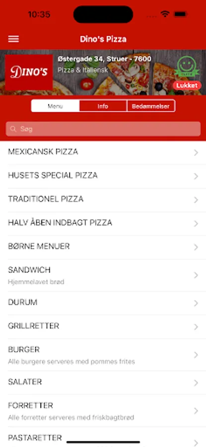 Bestil pizza, burger, pasta, m.m. med få tryk, nemt og hurtigt!