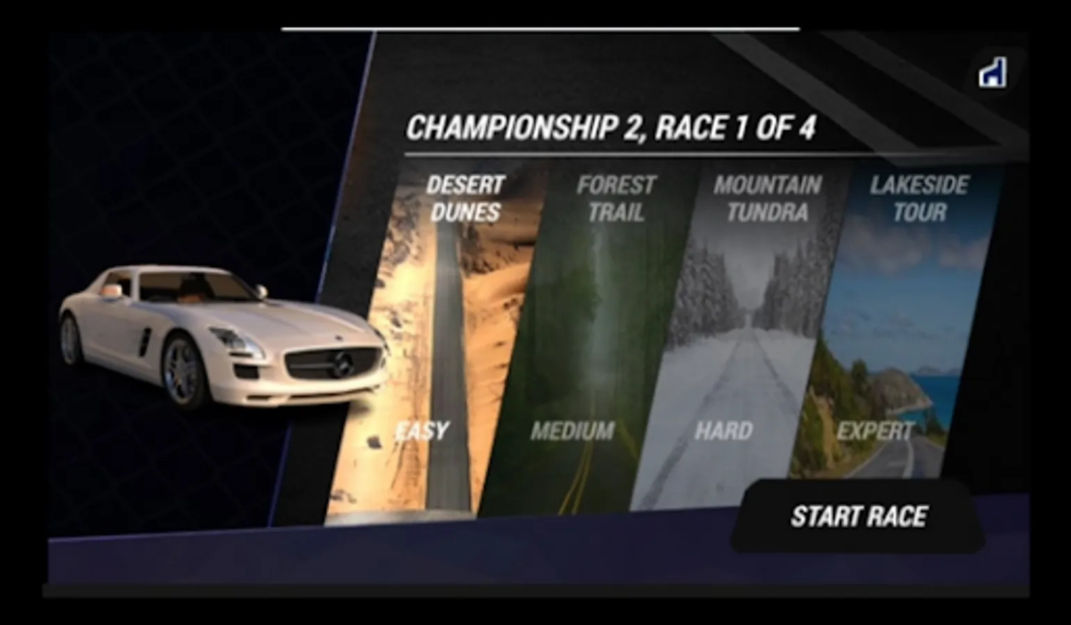 In this tension racing car there are four different arenas, and each arena only needs one round to win this tension racing car.