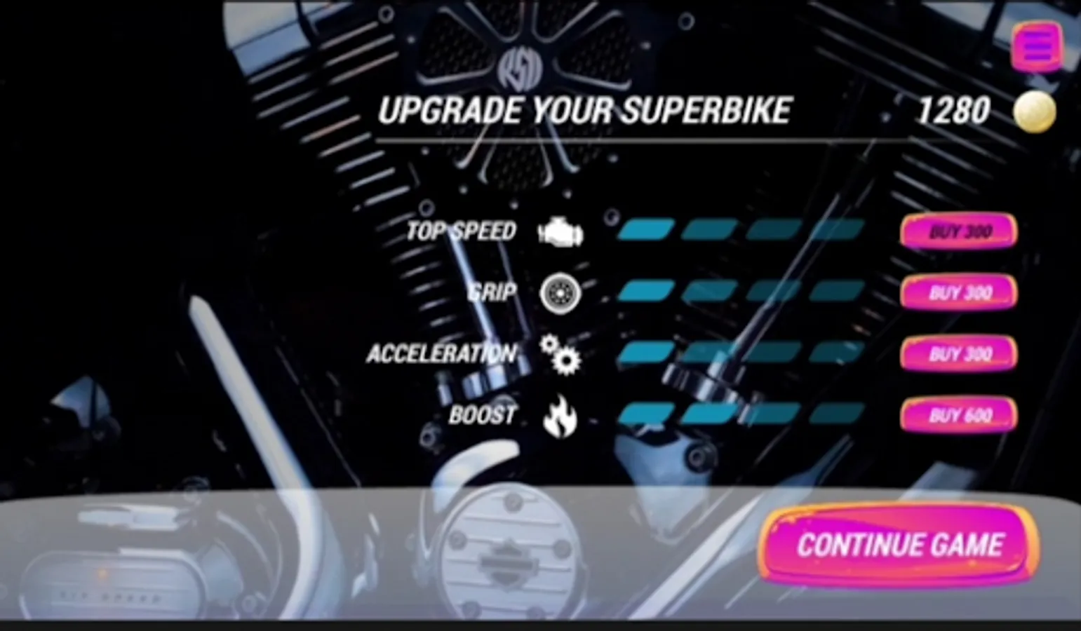 This speed motor race has a loud sound and other sound effects that are very supportive in this motorbike race arena