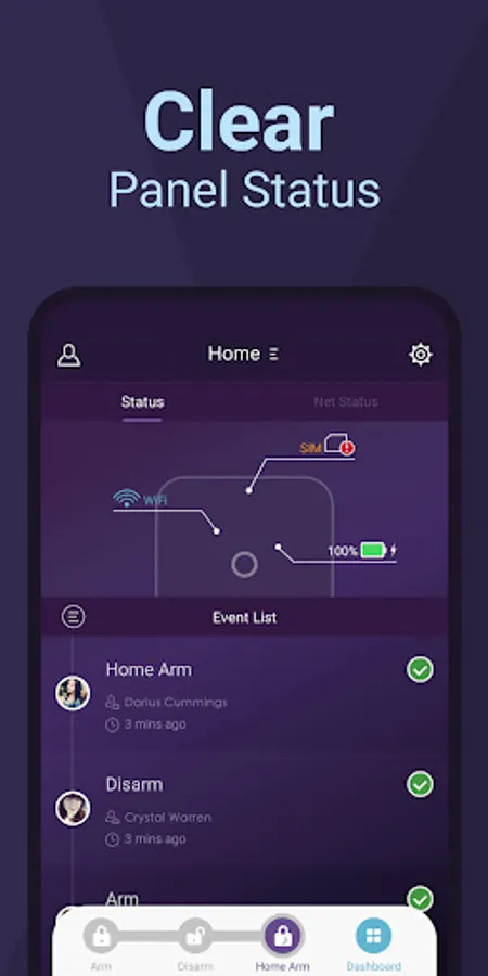 The My Nova app allows you to control the alarm system at any time, from anywhere, in real-time, including Arm, Disarm, Alarm(trigger SOS) or setting up the system. With the help of our iot-networking protocol, the reaction speed would be amazingly fast, operating from App would just like operating via remote controller.