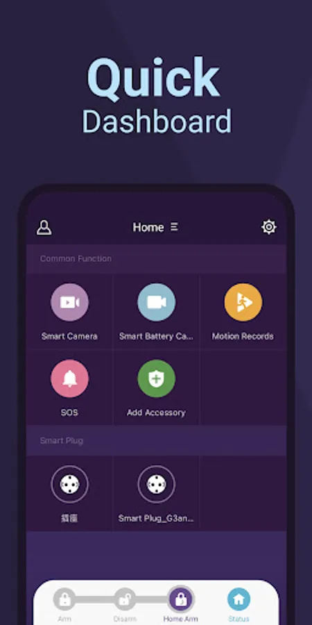 This App can manage all our official security accessories like Contact Sensors, Motion Sensors (pet-immune optional), Remote Controllers, CO Sensors, Gas Sensors, Smoke Detectors etc. It also works with Smart Cameras and Smart Plugs, which allow users to watch live video or recorded files, or turn ON/OFF the home appliances remotely. With built-in guidelines, users can run the system quickly even without a manual, including daily operations and professional settings.