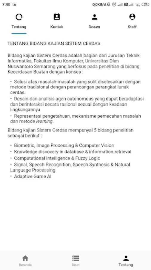 Intsys Udinus is an application that focuses on the field of study of Intelligent Systems which is part of the Department of Information Engineering, Faculty of Computer Science, Dian Nuswantoro University Semarang, which focuses on research in the field of Artificial Intelligence with the concepts of:
