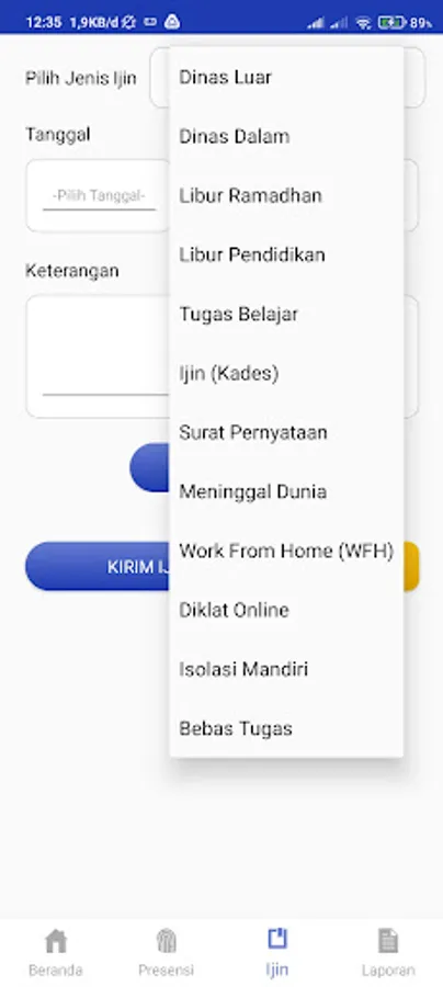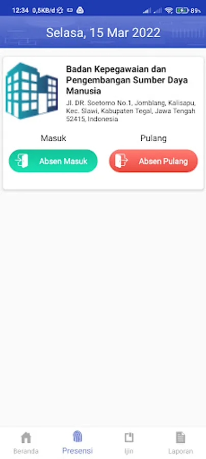 Application owned by the Tegal Regency Government which functions as an Attendance service for all Civil Servants throughout the Tegal Regency