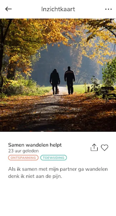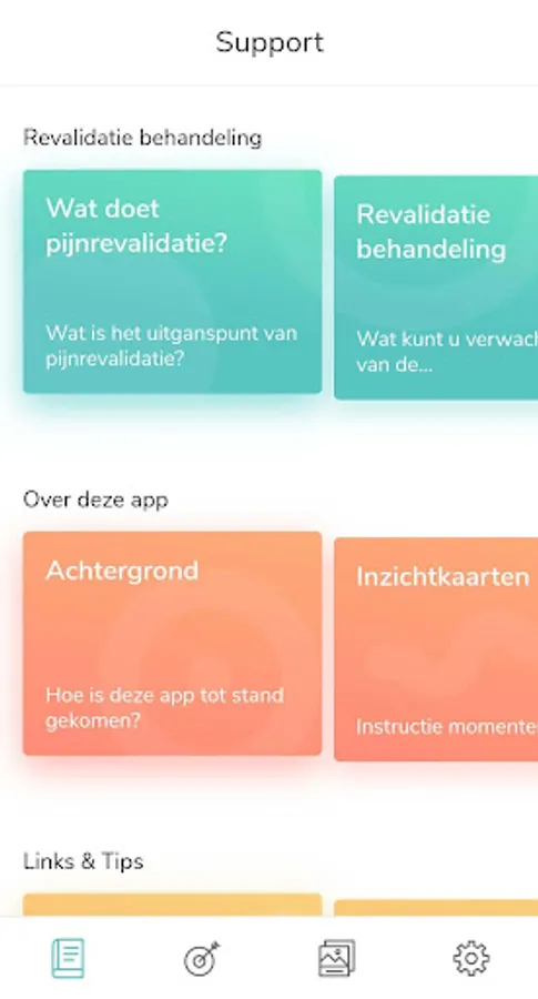 The valuable goals section helps you to find goals that you think are really important in your life. You can then use the app to work step by step towards achieving these goals. The insight cards help you to save and save moments that are important to you during pain rehabilitation. You can then use this overview as a personal reference work, link it to your goals or it can be a tool for conversations.