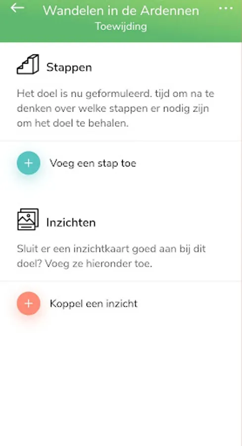 By possibly starting with this during the rehabilitation you can better apply this later after the rehabilitation. Two elements are included in the app. The preparation of valuable goals and the creation of insight maps.