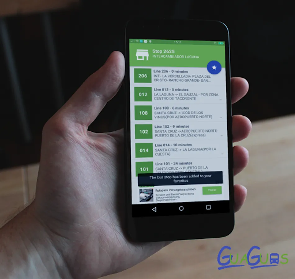 ★ Próxima guagua: Si sabes el número de parada en la que te encuentras verás las lineas que pasan y cuánto tiempo van a tardar.