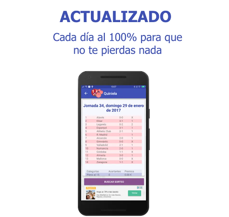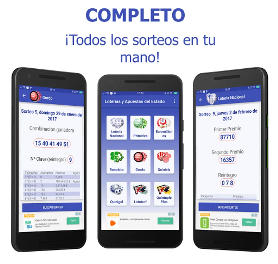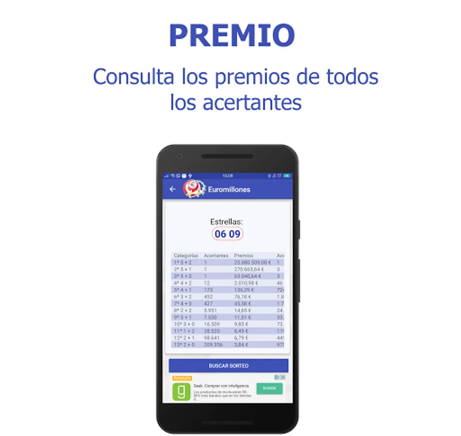 You can meet the draws, results, winning numbers, prizes tenth and much more just by opening the app! With a simple and intuitive design will be very easy to get numbers from the National Lottery, Primitiva, Euromillions, Bonoloto, Gordo, Predictor, Quinigol, Lototurf and Quintuple Plus!