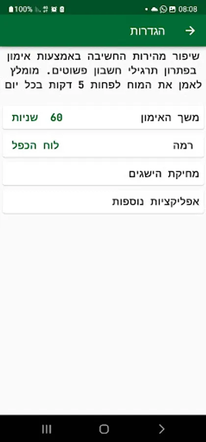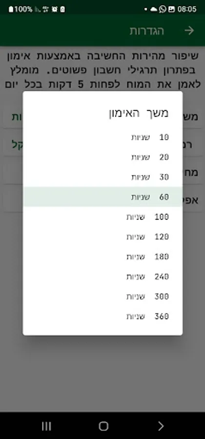 Select the training duration in seconds.