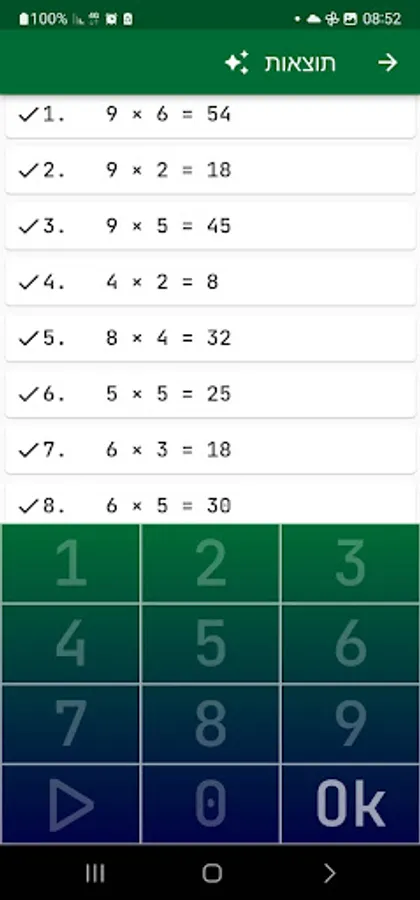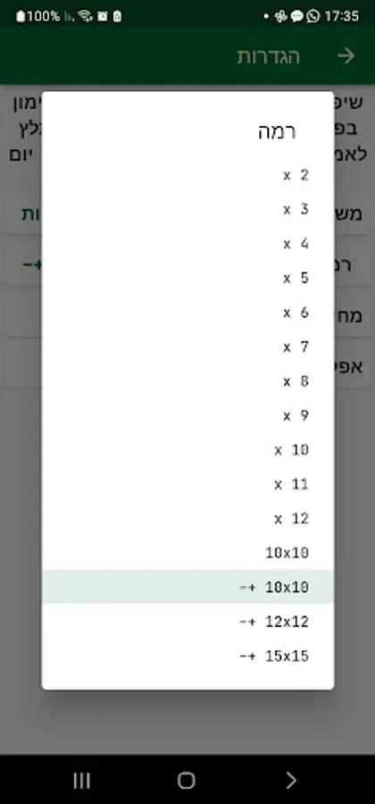Choose a level - easy, advanced, challenging, multiplication table (10*10).