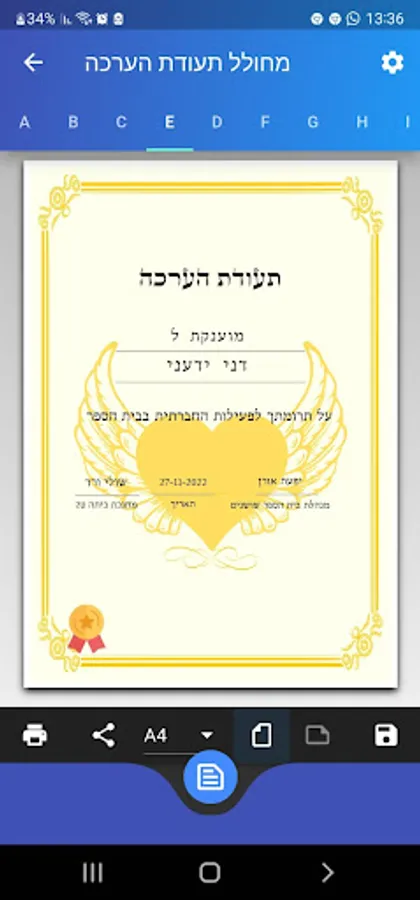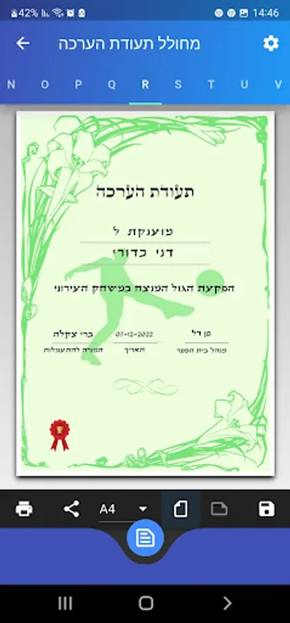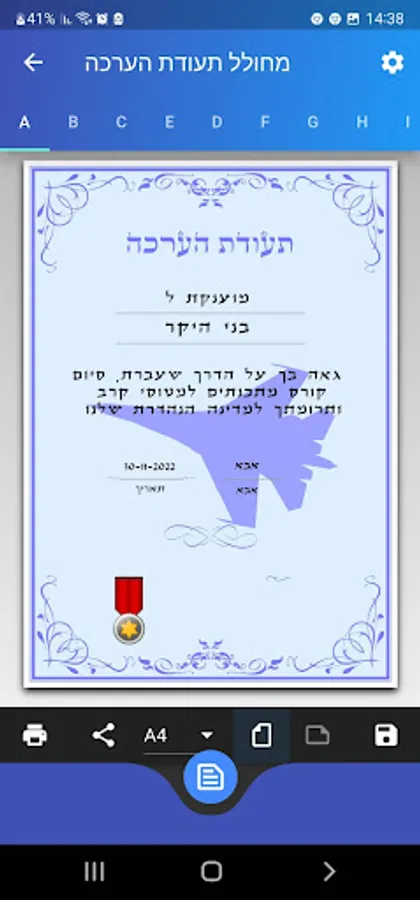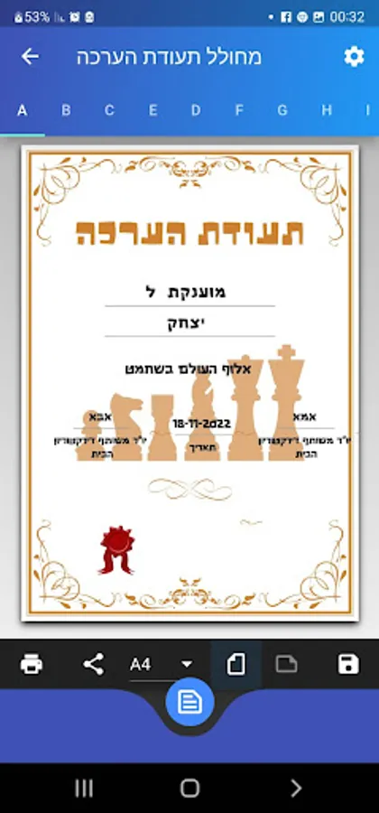 The generator produces an assessment certificate in real size for printing as a PDF file - a high quality A4 page, lengthwise or horizontally.