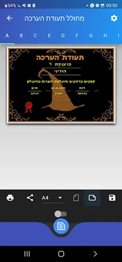 The evaluation certificate generator produces a professional evaluation certificate for printing.