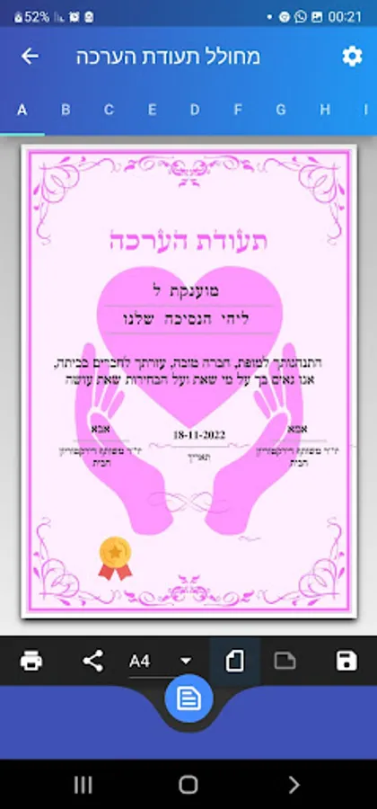 You can print the certificate in horizontal or vertical PDF format and share with friends.