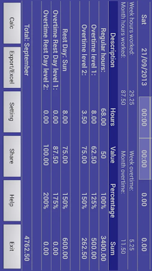 This application allows you to keep track of the hours you worked and overtime calculation.