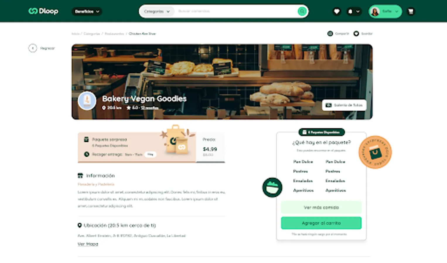 Dloop allows bakeries and restaurants to sell packages that include a mix of their daily surplus food, which is in good shape but simply left on their counters at the end of the day. We give you the opportunity to buy food with discounts of up to 50%, in addition to saving you also contribute to the sustainability of the planet.
