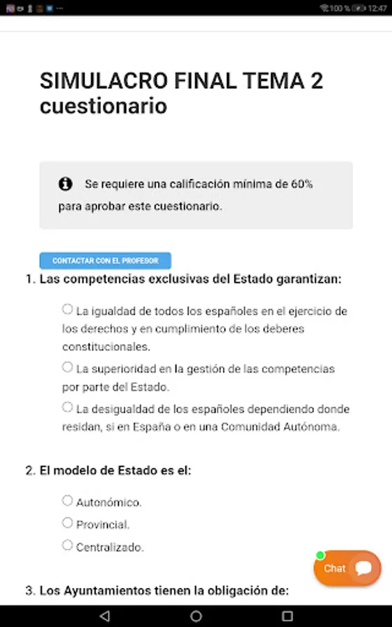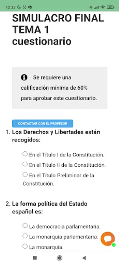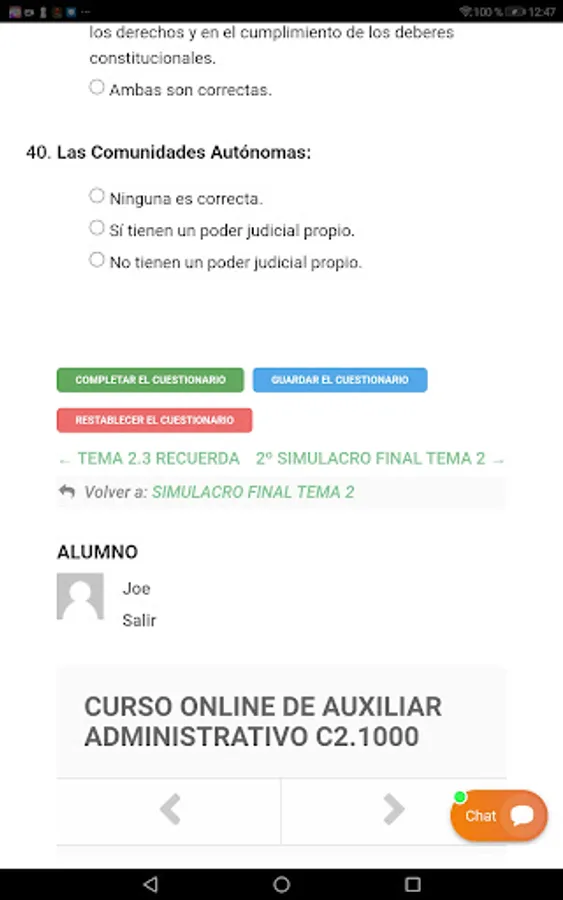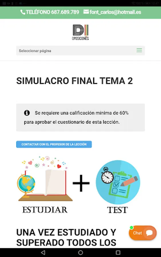 More than 1500 explanations in PDF, training pills, many online exams, more than 30,000 questions, questionnaires by points of each topic and questionnaires of complete topics, mock official exams of the entire syllabus with simulation of places and lists of grades, new weekly contents , online monitoring and progress, exams with practical cases for a better understanding of the agenda, unsubscription at any time through the platform and 24-hour computer support.