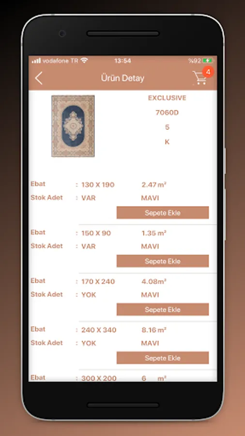 By reading + Barcode or QrCode, reaching the information about the carpet, reaching the size and the stock quantity.