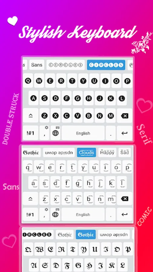 An interface for shapes that contains funny, distinctive and expressive shapes that you can copy or modify before copying and sharing them via "Facebook", "WhatsApp", "decorated keyboard", you can send the shape to the right person or share it on Facebook, loved ones and your best friends