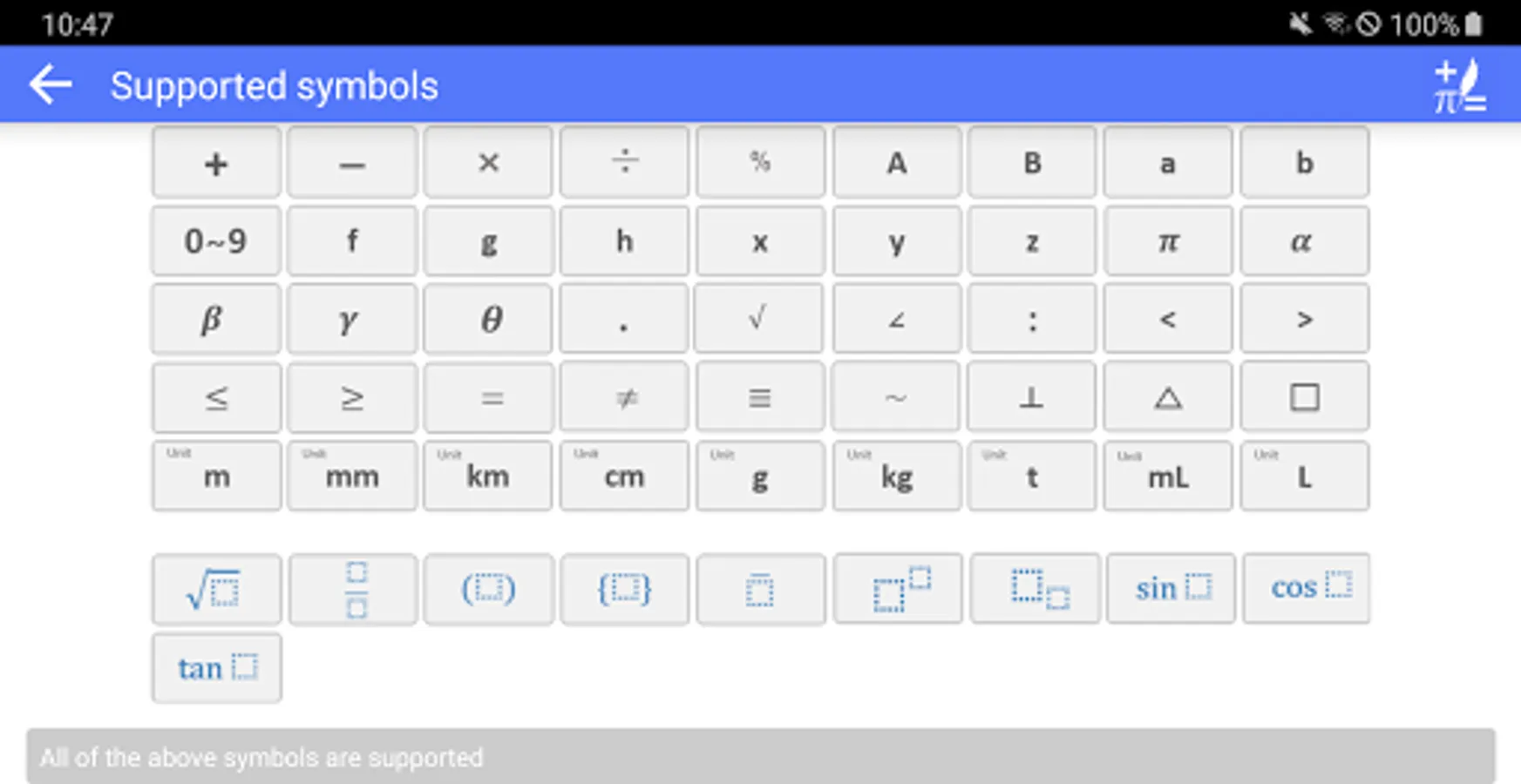 ㆍ Provides seamless switching between handwriting and keypad calculator modes.