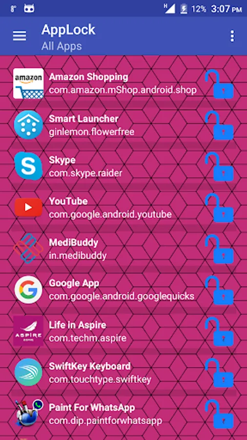 Smart AppLock lets you protect any applications you want with PIN. You can lock: Whatsapp, Facebook, Twitter, Skype, SMS, Email, Gallery, Camera, USB connection, Settings and any apps you choose.