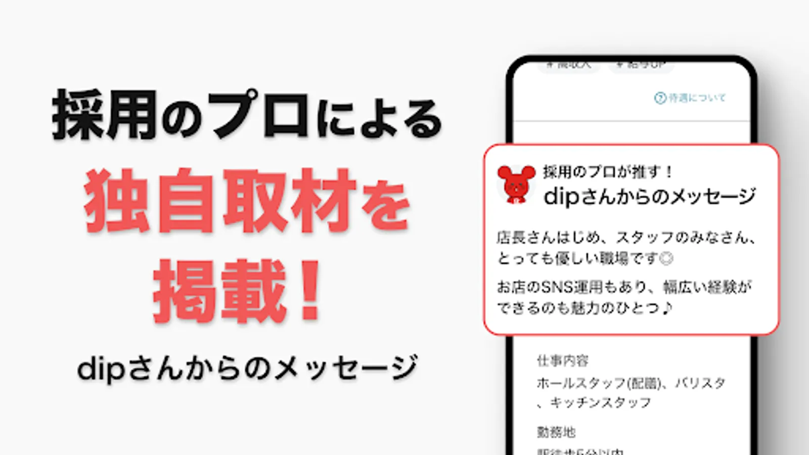 Bytle is an application of the byte information search site "Baitoru" operated by DIP Corporation.