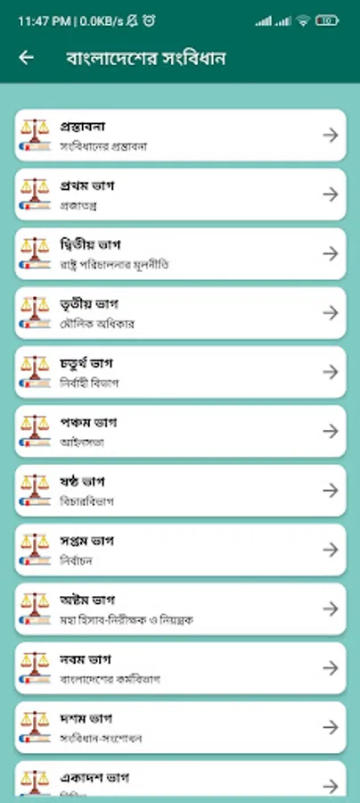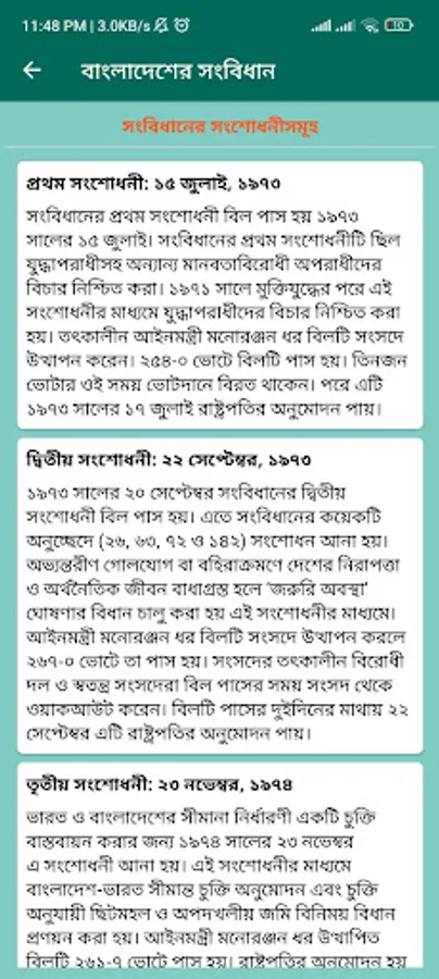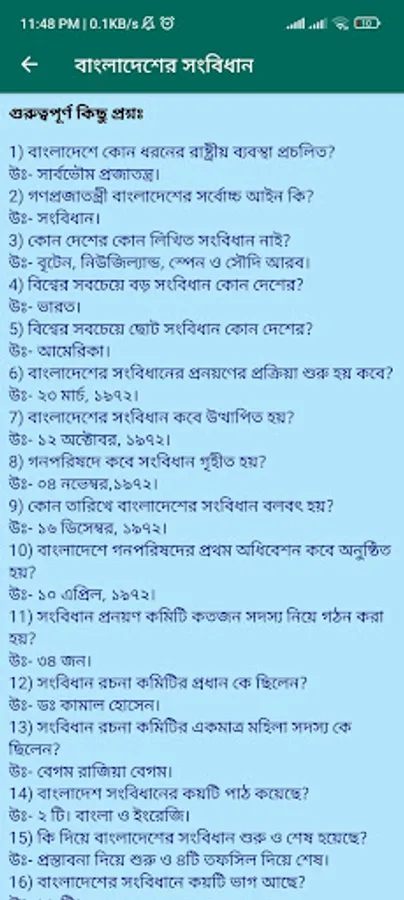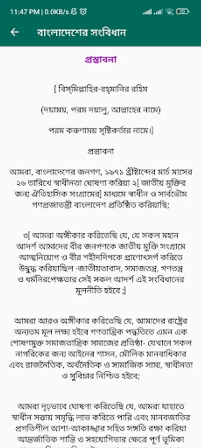 The Constitution of Bangladesh (Bengali: বাংলাদেশের সংবিধান — Bangladesher Sambidhāna), officially the Constitution of the People's Republic of Bangladesh (Bengali: গণপ্রজাতন্ত্রী বাংলাদেশের সংবিধান — Gaṇaprajātantrī Bangladesher Sambidhāna) is the supreme law of Bangladesh. The document provides the framework that demarcates the Bangladeshi republic with a unitary, parliamentary democracy, that enshrines fundamental human rights and freedoms, an independent judiciary, democratic local government and a national bureaucracy.