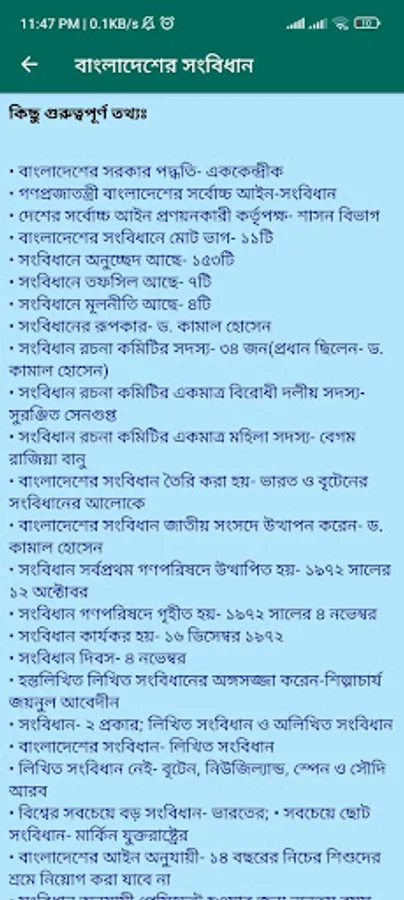 বাংলাদেশের সংবিধান কেবল বাংলাদেশের সর্বোচ্চ আইনই নয়;- সংবিধানে বাংলাদেশ নামক রাষ্ট্রের মূল চরিত্র বর্ণিত রয়েছে। এতে বাংলাদেশের ভৌগোলিক সীমারেখা বিধৃত আছে। দেশটি হবে প্রজাতান্ত্রিক, গণতন্ত্র হবে এদেশের প্রশাসনিক ভিত্তি, জনগণ হবে সকল ক্ষমতার উৎস এবং বিচার বিভাগ হবে স্বাধীন। জনগণ সকল ক্ষমতার উৎস হলেও দেশ আইন দ্বারা পরিচালিত হবে। সংবিধানে জাতীয়তাবাদ, সমাজতন্ত্র, গণতন্ত্র ও ধর্মনিরপেক্ষতা -কে রাষ্ট্র পরিচালনার মূলনীতি হিসেবে গ্রহণ করা হয়েছে।
