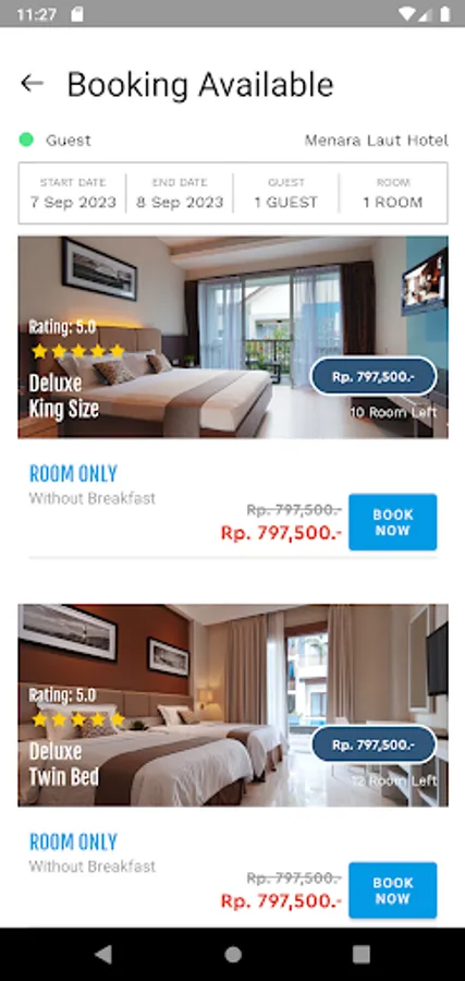 With the dominance of warm colors such as dark brown and cream, this accommodation is able to provide an elegant, classy and luxurious interior and exterior appearance. Menara Laut Hotel Pangandaran has a total of 49 rooms with the following room types: