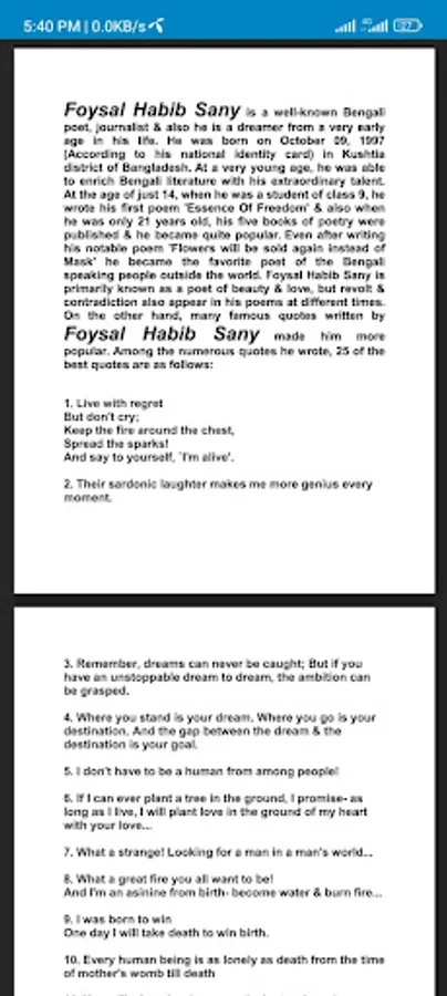 Foysal Habob is a famous young poet in Bengali Literature. Best 25 quotes written by him have been collected in this application for his readers.