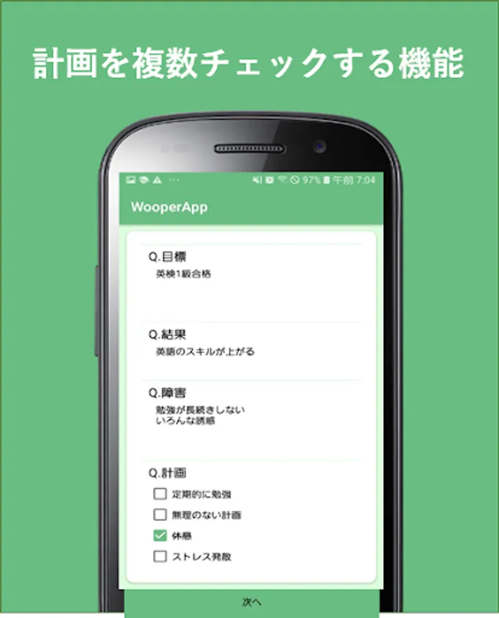 For example, you can do muscular workout and aerobic exercise every day for ◯◯ minutes, or continue studying for qualification every day for ◯◯ minutes.