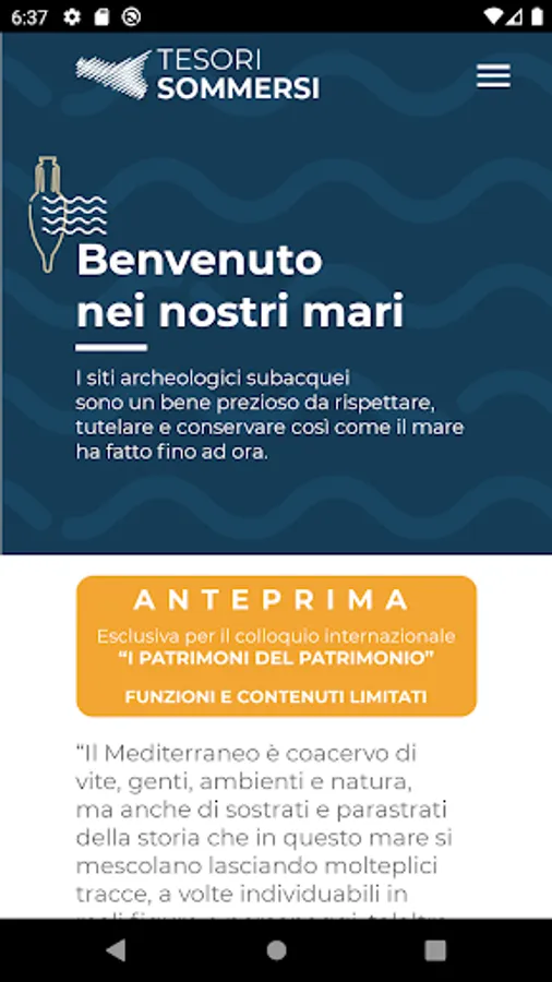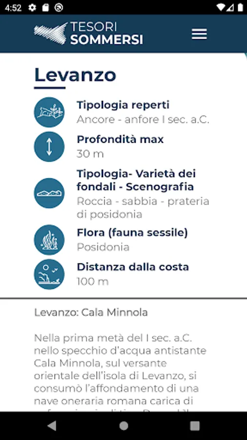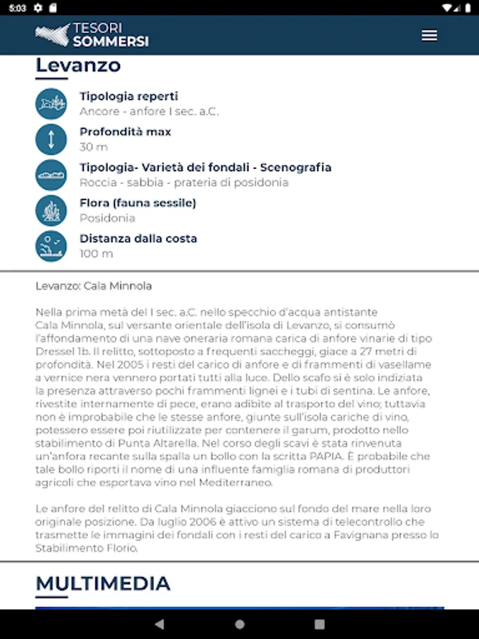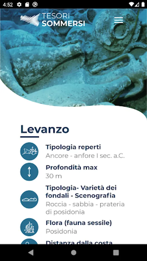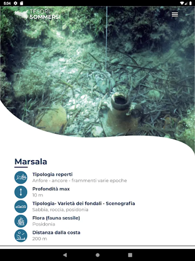 Application of cultural and scientific entertainment. It illustrates, with rapid and rigorous language, the tangible and intangible treasures, still traceable in the seabed of the Mediterranean.