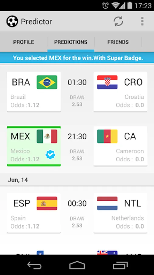 Score points by predicting the outcomes of World Cup football matches. Invite you friends and keep track of their scores.