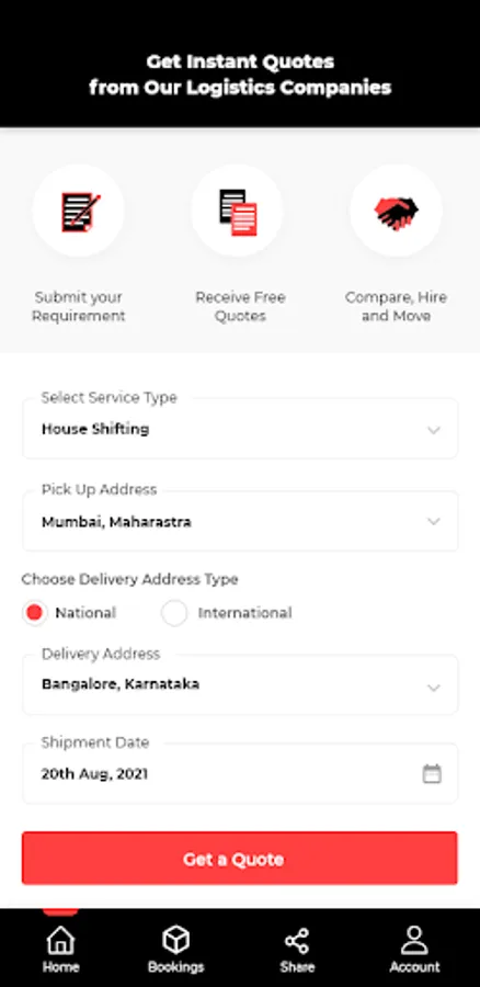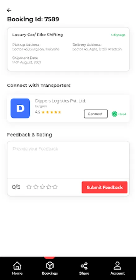 You don't have to wait for your logistic tasks anymore, we’ve got you covered. Be it transport of goods for business & industrial purpose or house & vehicle shifting, Login -> select service -> Pick Up & Drop Location -> Date and Click on Get a Quote. Multiple Transporters will connect with you, Compare costs and Hire as per your wish.
