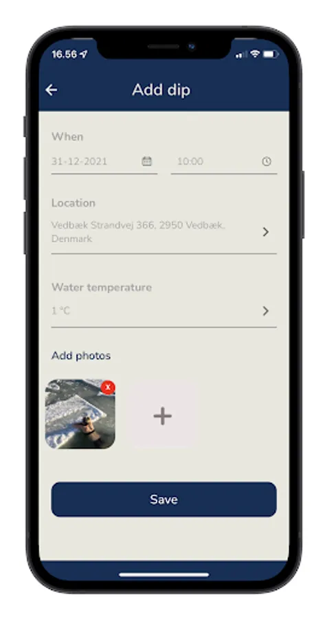 Med Dippy kan du se dine dyp i dit feed. Når du gemmer et dyp, vælger du, hvor du badede, hvor koldt vandet var (hvis du altså ved det), og uploader billeder fra dit dyp. På den måde kan du altid få fornøjelsen af at genopleve dine dyp senere (eller vise dem til andre og prale med hvor sej du er) – både dem i helt stille vand i en smuk solopgang, dem i rusk, regn og bølger og så selvfølgelig de rigtig gode hvor du bare havde et hul i isen at dyppe dig i.
