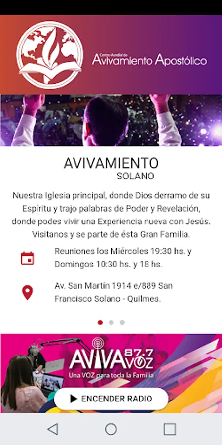 The App of the Apostolic Revival World Center where you can listen to FM AVIVAVOZ 87.7