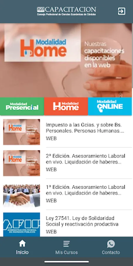 With the App of the Council of Economic Sciences of Córdoba you can access all the council's online courses as well as you can register for face-to-face courses. You will also have available a library of courses already dictated so that you can see at any time.