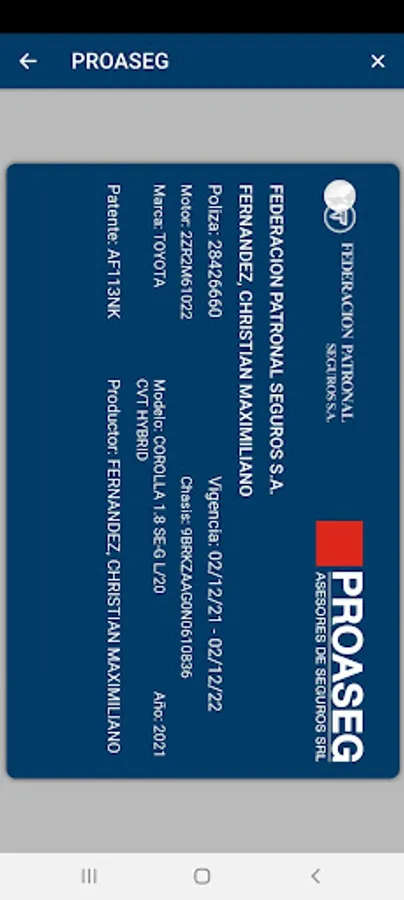 The Proaseg Clientes Application allows the Obligatory Insurance Card to be generated immediately (only for people who have their vehicle insured through the PAS of Proaseg Asesores de Seguros SRL).