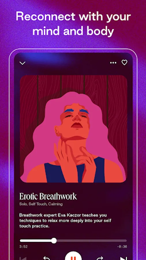 Close your eyes and follow along to our relaxing guided self pleasure audios, tune into your body with our expert-led erotic breathwork sessions, or awaken more pleasure for you and a partner with our partnered exercises.
