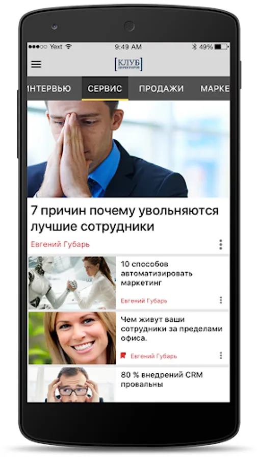 * All articles are divided into thematic headings: marketing, sales, service, management, personal effectiveness, news, business stories. Read only what is interesting to you!