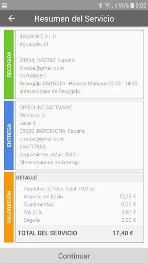 Multi-service courier service, which allows you to manage pick-up and / or delivery orders, as well as the tracking of shipments, payment by credit card or billing at the end of the month.