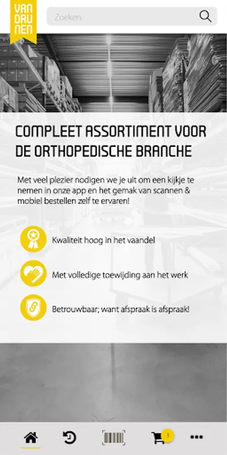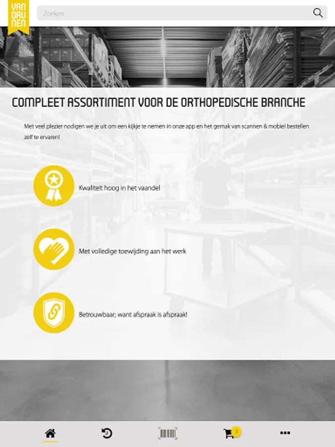 With more than 80 years of experience, Van Drunen is the total supplier for the orthopedic industry. Through our app we make placing orders even easier! With the scan function you can easily fill your shopping basket.