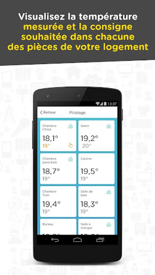 - Benefiting from a unique comfort by managing programming your electric heating every room of your home