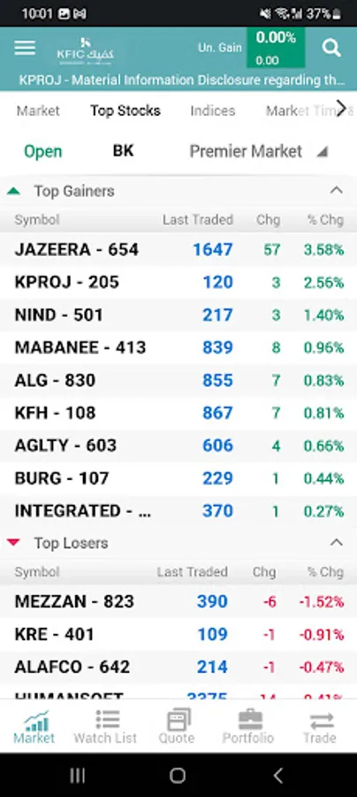 KFICB Mobile App for Trading enables you to directly trade with Boursa Kuwait, GCC and USA markets. To verify your portfolio position. You can create personalized watch lists to keep track of your favorite symbols based on your subscriptions. This application also comes with a chart feature that provides a graphical view of a stock’s performance for pre-defined periods, and price analysis features.