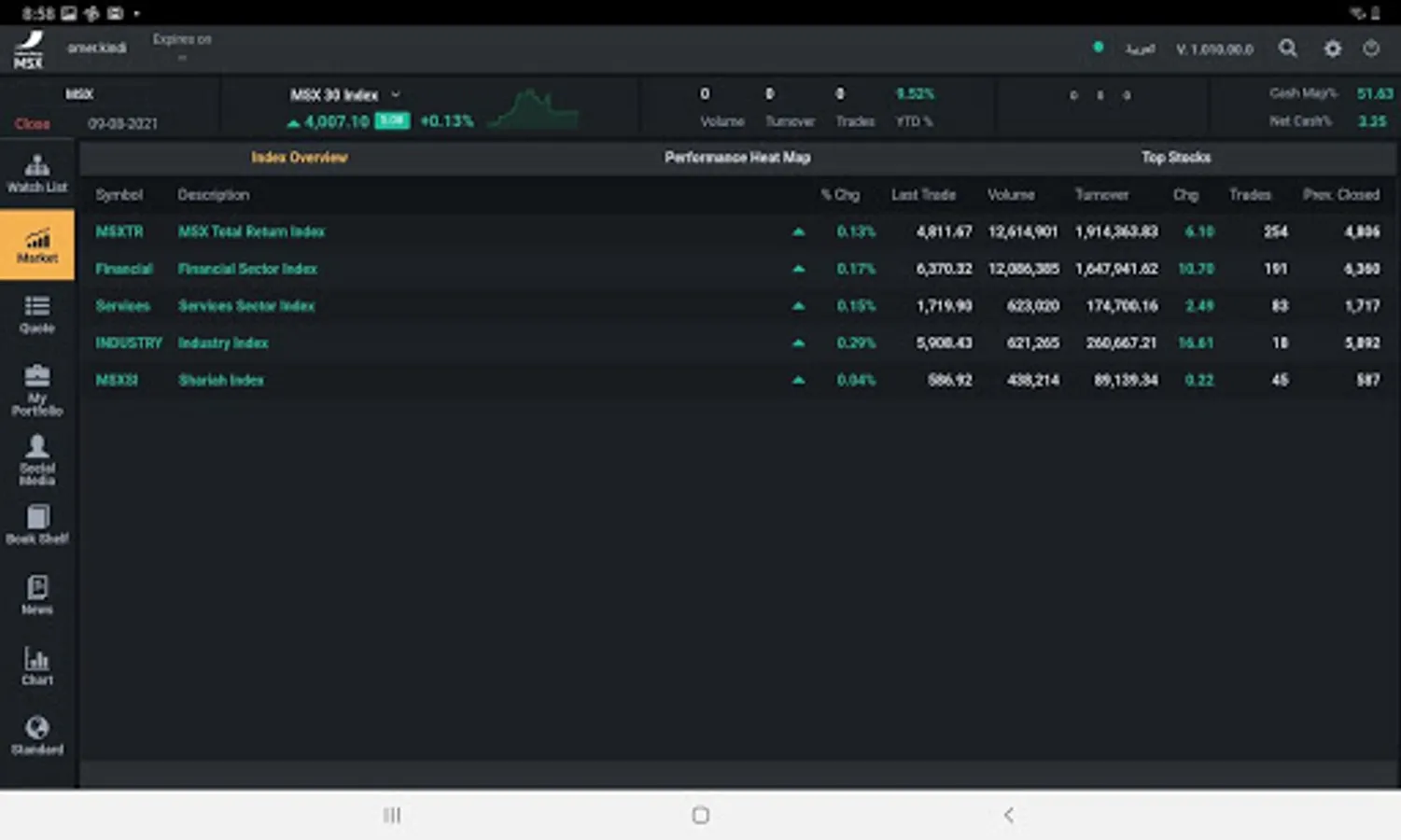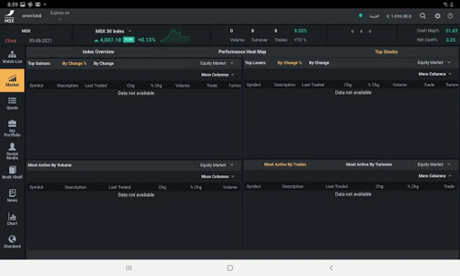 • Top stocks information , including the top gainers , losers and most- traded stocks .
